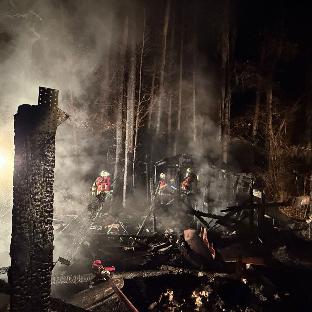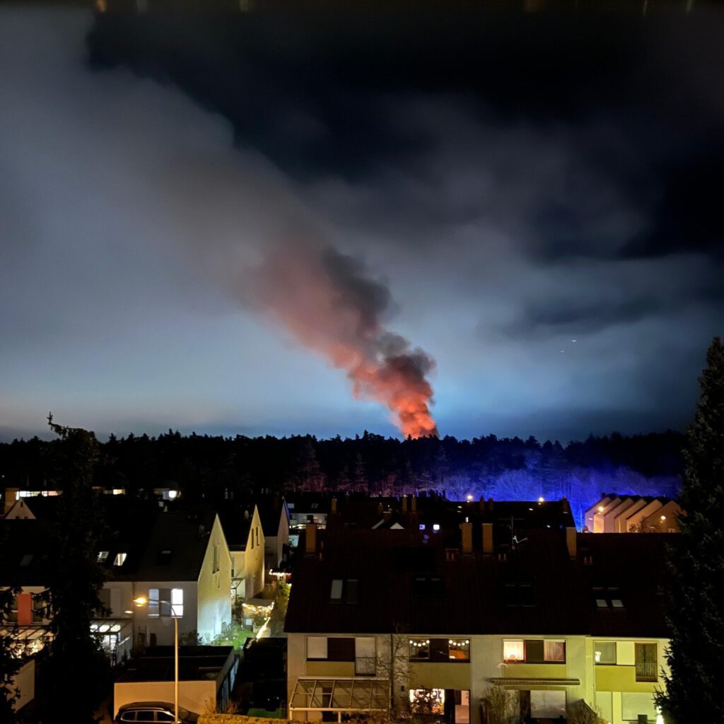 Die Freiwillige Feuerwehr Renzenhof unterstützte die Maßnahmen mit zwei weiteren Atemschutztrupps sowie bei der Verlegung einer rund 400 Meter langen Schlauchleitung zur Sicherstellung der Wasserversorgung aus dem Wohngebiet Laufer Weg. Da sich die Einsatzstelle nicht in unmittelbarer Nähe eines befahrbaren Weges befand, war zudem die Verlegung von etwa 400 Metern Stromkabel zur Ausleuchtung der Einsatzstelle erforderlich.