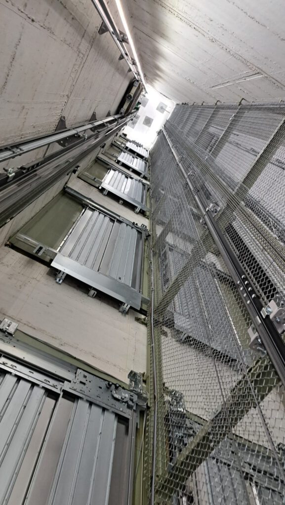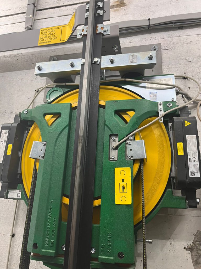 Eine entscheidende Rolle zum sicheren Arbeiten trägt hier die Kommunikation zwischen den Einsatzkräften an der Aufzugstüre und denen an der Steuerung bei. Beide Positionen müssen sich hier permanent und professionell absprechen. Aber auch die Funktionen des Aufzuges und der Steuerung muss den Kräften der Feuerwehr bekannt sein und wurde durch diesen Lehrgang vermittelt. Um die verbaute Technik (Führungsschienen, Gegengewicht, Treibscheibe, Sicherheitseinrichtungen, Schachttürverriegelungen usw.), die im Aufzugsschacht verbaut ist, praxisnah vermittelt zu bekommen, bestand die Möglichkeit bei einer kontrollierten handgesteuerten Fahrt auf der Aufzugskabine sich diese Komponenten in Natura anzusehen und deren Funktion erläutert zu bekommen.
