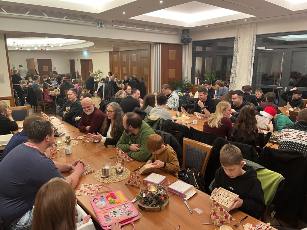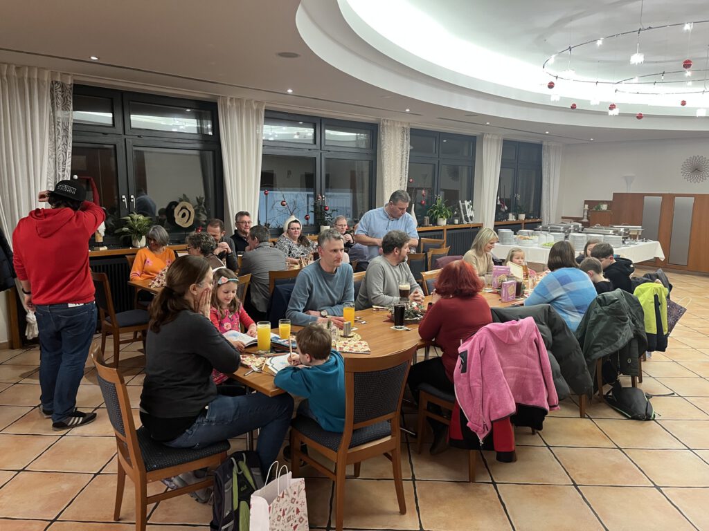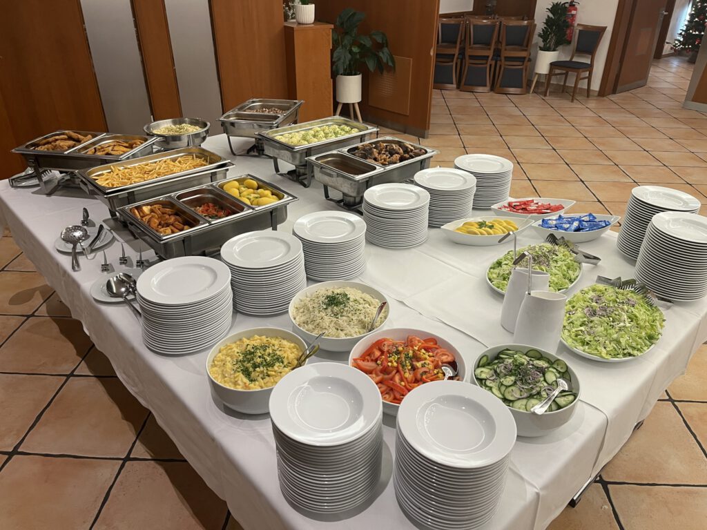 Danach ging es ins Warme und zum umfangreichen Essensbuffet, das Silke Walther und ihr Team für die Gäste vorbereitet hatten. Die Zeit verlief bei anregenden Gesprächen wie im Flug. Diese wurden lediglich durch das spätere Nachtisch-Buffet angenehm unterbrochen.