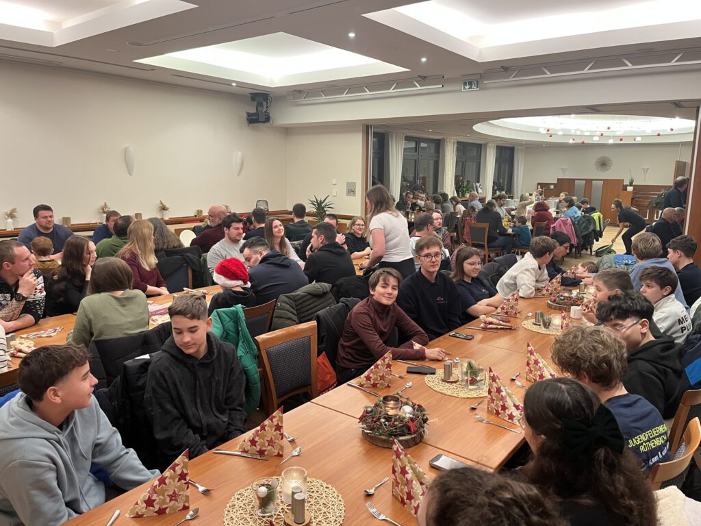 Kommandant Martin Knorr begrüßte am 12. Dezember beim Glühwein-Empfang auf der Terrasse des Schwaiger Restaurants „Pegnitzblick“ nicht nur die Aktiven mit ihren Familien, Ehepartnern/innen und Freund/innen, sondern auch einige ehemalige Aktive im „Feuerwehr-Ruhestand“ und natürlich die Mitglieder der Jugendgruppe.