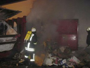 Container stehende Papierpresse bereits stark rauchte. Als erste