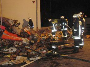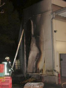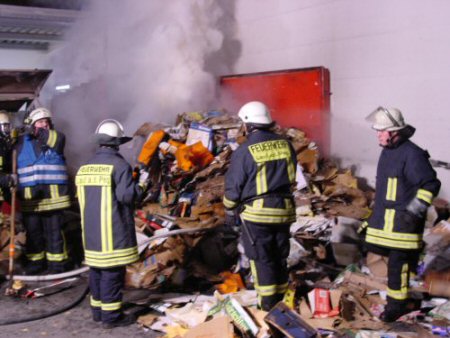 Bei der Kontrolle des Verkaufsraumes mit dem Marktleiter konnte keine Verrauchung festgestellt werden, der Sachschaden beschränkte sich somit auf die Außenfassade. Zur Überprüfung der Papierpresse öffneten die Wehrmänner die Entladeöffnung und schoben mit der eingebauten Presse des Altpapier ins Freie. Hier konnten einzelne Glutnester abgelöscht werden. Bestens bewährt hat sich hier die sogenannte Löschlanze, welche direkt in die Glutnester gerammt wird und so sofortige Wirkung zeigt. Außerdem fügte man dem Löschwasser ein Netzmittel bei. Nach kurzer Belüftung der Metzgerei und Annahmestelle übergab man die Einsatzstelle an die Polizei. Der Einsatz der vorsorglich nachalarmierten Feuerwehren war nicht nötig.