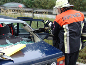 Hierzu wurden die Türen des Fahrzeuges nach Absprache mit dem Notarzt entfernt und anschließend das Dach mit der Rettungsschere abgetrennt. Mit Hilfe der Schaufeltrage wurde die Fahrerin aus dem Landkreis Herford aus dem Fahrzeug gerettet und dem Rettungsdienst übergeben.