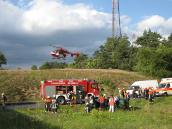 Rettungshubschrauber. Die Feuerwehr Schwaig übernahm im Anschluss die Aufräumarbeiten