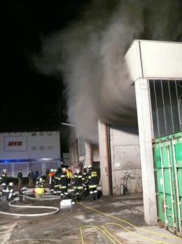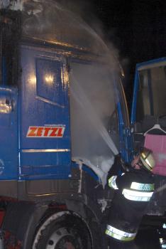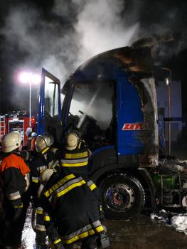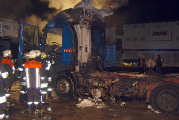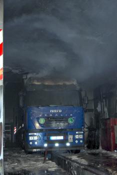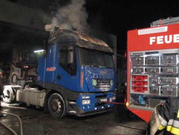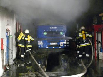 Ein Lkw-Fahrer der Spedition hatte Rauch bemerkt. Daraufhin alarmierte er Polizei und Feuerwehr. Auch der ASB war zur eventuellen Verletztenversorgung sofort zu Stelle. Beim Eintreffen der Rettungskräfte drangen dicke Rauchschwaden aus den Rolltoren der Fahrzeughallen. Nachdem der Speditionseigentümer das am stärksten betroffene Tor geöffnet hatte, kam die Feuerwehr an den Brandherd heran: eine Sattelzugmaschine samt Auflieger stand in Flammen. Nach Einsatz mehrerer Atemschutz-Trupps der Feuerwehr und intensiven Löscharbeiten konnte das Feuer eingedämmt werden, ohne auf weitere Gebäudeteile überzugreifen.