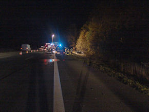 Beim Eintreffen der ersten Feuerwehrkräfte stellte sich folgende Lage dar: Eine Mercedes E-Klasse aus Österreich stand auf den Autobahn A3 in Fahrtrichtung Würzburg zwischen dem Autobahnkreuz Nürnberg und der Anschlussstelle Schwaig entgegen der Fahrtrichtung neben der Fahrbahn. Eine weibliche Person wurde vom kurz zuvor eingetroffenen Rettungsdienst neben dem Fahrzeug reanimiert, weiterhin wurden vier Kinder und der Familienvater vom Rettungsdienst versorgt. Das THW Nürnberg, welches im Rahmen des Autobahndienstes unterwegs war, baute Beleuchtungsgerät auf, Personen waren nicht mehr eingeklemmt.