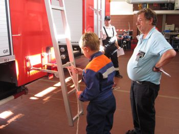 Nachdem alle Prüfungen abgelegt waren, gab es in der Fahrzeughalle noch einige Fragen aus dem Wissenstest zu lösen.