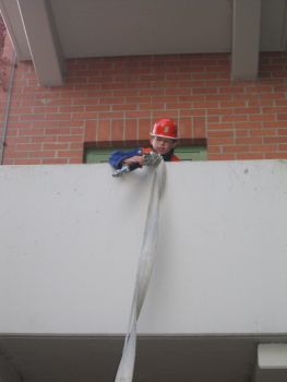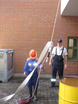 Station 2: Strahlrohr mit dem entsprechenden Knoten in das 1. OG befördern