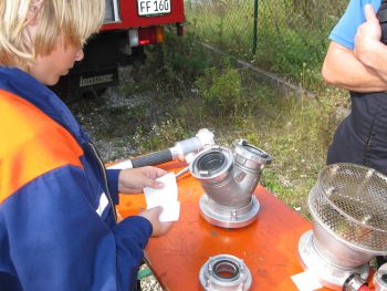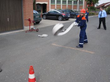 Station 5: gezieltes Auswerfen eines C-Schlauches durch Leitkegel