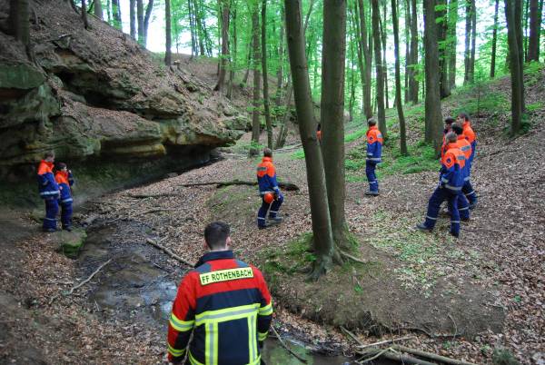 Vermisstensuche am klingenden Wasserfall in Haimendorf