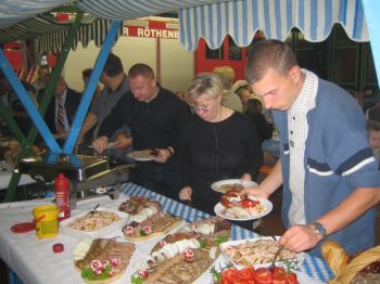 Ein „internationaler“ Weißwurst-Frühschoppen an Sonntagvormittag beschloss das Rahmenprogramm. Bei der Verabschiedung der Gäste aus den drei Partnerstädten durfte Klaus Keim und seine Männer ein herzliches Dankeschön für die erwiesene Gastfreundschaft entgegennehmen.