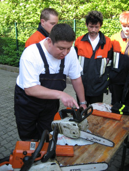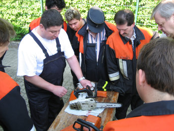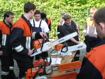 Ziel der Ausbildungsveranstaltung war es, das Wissen der aktiven Mannschaft aus den durchgeführten Motorsägenführerlehrgängen der letzten Jahre wieder aufzufrischen. Die Ausbilder gingen hierbei insbesondere auf die unterschiedlichen Handhabung ein. Diese unterscheiden sich bei älteren und neueren Geräten zum Teil deutlich. Neben Motorsägen wurden auch die Rettungssäge und der Motortrennschleifer thematisiert.