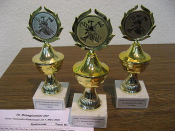 14. Dreeg-Turnier in der FeuerwacheRÖTHENBACH - Vierundzwanzig Teilnehmer folgten der Einladung der Feuerwehr Röthenbach zum mittlerweile 14.Dreeg-Turnier am 7.März 2008 in die Feuerwache. Kommandant Klaus Keim freute sich, dass neben aktiven, passiven und fördernden Mitgliedern auch in diesem Jahr wieder zwei Gastspieler den Weg zur Feuerwehr gefunden hatten und erneut alle Altersgruppen vertreten waren.