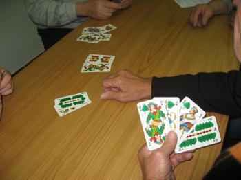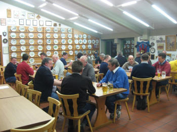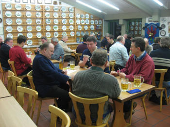 Hier komme das gute Miteinander zwischen "Alt" und "Jung" sehr deutlich zum Ausdruck. Nach der Auslosung der sechs Spielgruppen konnte die erste Runde beginnen. Gut 90 Minuten brauchten die Teilnehmer hierfür, bevor sie sich in der Pause bei rohen Schinken und Rohwurst stärken konnten.