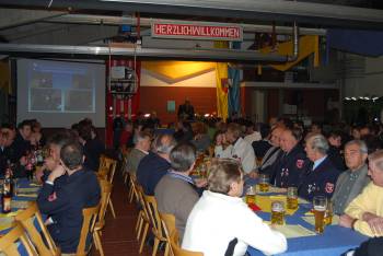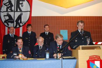 Mit dem Wahlspruch "Einer für alle - alle für einen - Gott zur Ehr - dem Nächsten zur Wehr" schloss Kommandant Klaus Keim die Versammlung und lud im Namen der Feuerwehr alle Anwesenden zu einem von "Feuerwehroberchefkoch" Heinz Schad angerichtetem Buffet ein.