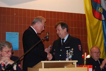 des 1. Kommandanten. Die anstehende Neuwahl des Vertrauensmanns der Mannschaft brachte keinerlei Überraschungen. Bernd Thiel wurde einstimmig wieder zum Vertrauensmann gewählt. Dass es sich hier im wahrsten Sinne des Wortes um einen Vertrauensmann handelt, zeigt die Tatsache, dass Bernd Thiel in diesem Amt jetzt schon seit 10 Jahren immer wieder bestätigt wird.