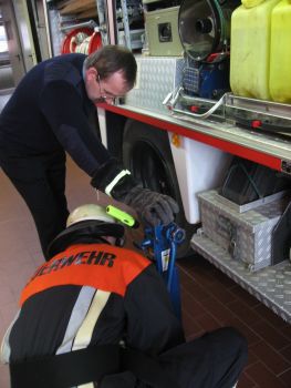 Im praktischen Teil wurden Schwerpunkte bei Knoten und Stiche, Gerätekunde sowie im Bereich der technischen Hilfeleistung gelegt. So mussten die Wehrmänner u.a. einen hydraulischen Heber zum Anheben einer schweren Last einsetzen und die korrekte und sichere Anwendung erläutern.