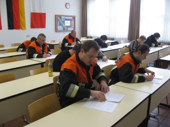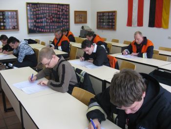 Unter den wachsamen Augen von Thomas Geißler (Behringersdorf), KBM Fritz Holfelder (Hedersdorf) und KBM Norbert Schlicht (Schnaittach) wurde das Erlernte in einer mehrstündigen theoretischen und praktischen Prüfung abgefragt. Im schriftlichen Part mussten die angehenden Truppführer 50 Fragen zum gesamten Themenspektrum der Feuerwehr (Brennen und Löschen, Unfallverhütung, gesetzliche Grundlagen, Fahrzeugkunde, …) beantworten.