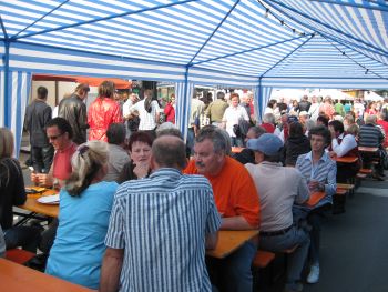 Insbesondere in den Mittags- und Abendstunden waren wieder alle Tische besetzt, Küchenmannschaft und Bedienungen waren wie jedes Jahr zu Spitzenzeiten kräftig gefordert. An dieser Stelle wieder herzlichen Dank an alle unsere „Stammgäste“, die jedes Jahr zu „ihrer Feuerwehr“ kommen. Die Erlöse aus dem Getränke- und Essensverkauf fließen in die Vereinskasse und kommen so wieder den Wehrmännern und ihren Familien zu Gute. Bereits wiederholt wurden wichtige Ausrüstungsgegenstände für Einsätze und Übungen von den Rücklagen bezahlt.