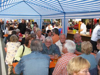 RÖTHENBACH – Zum 26. Röthenbacher Stadtfest am 20./21. Juni 2009 hatte der Wettergott ein Einsehen mit den Vereinen. Abgesehen von einigen Regenwolken und –tropfen blieb es beim „Fest der Vereine“ trocken und sonnig, so dass zahlreiche Besucher wieder die Hauptstraße bevölkerten. Erstmals nach dem Abriss des Wohn- und Geschäftsgebäudes konnte zudem die freie Fläche des geplanten Marktplatzes für eine Veranstaltung genutzt werden. Die FF Röthenbach war wieder mit ihrem traditionellen Stand vertreten und servierte zu hausgemachtem Kartoffelsalat Nürnberger Bratwürste, Spießbraten und „Haxn“.