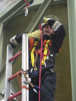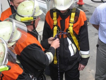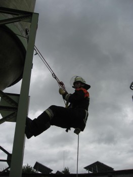 Sonderausbildung "Sicheres Arbeiten in absturzgefährdeten Bereichen"RÖTHENBACH - Eine freiwillige Sonderausbildung "Sicheres Arbeiten in absturzgefährdeten Bereichen" führte die FF Röthenbach am 18. Juli 2009 durch. In einem theoretischen und einem praktischen Ausbildungsteil wurden die Grundlagen für ein sicheres Arbeiten in entsprechenden Gefährdungsbereichen geübt.