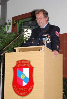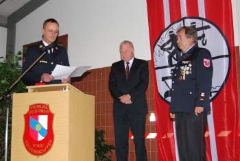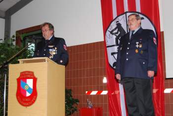 Nach seiner Begrüßung gab Kommandant Keim einen Rückblick auf die Geschehnisse im ersten Halbjahr 2012 und den Ausblick auf das in den kommenden Monaten Geplante und leitete anschließend zum Höhepunkt des Abends, den Ehrungen über.