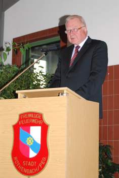 Erster Bürgermeister Günther Steinbauer bedankte sich im Namen der Stadt bei den geehrten Feuerwehrmännern für den langjährigen Dienst und überreichte ein Geschenk. Bei dieser Gelegenheit sicherte er der Feuerwehr auch für die Zukunft die volle Unterstützung der Stadt Röthenbach zu.
