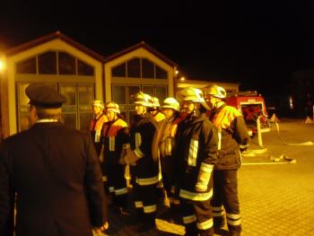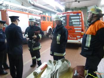 Eine kleine Besonderheit bei der praktischen Prüfung ist noch anzusprechen. Da es sich nur um 3 Prüflinge handelte, mussten die fehlenden Positionen beim "Löscheinsatz" und beim "Saugleitung kuppeln" besetzt werden. Hierbei waren unter anderen die beiden Kommandanten der Feuerwehren Röthenbach und Renzenhof mit von der Partie und mussten "sozusagen", erneut an der Prüfung mitmachen bzw. teilnehmen. - Es war eine klasse Sache! -